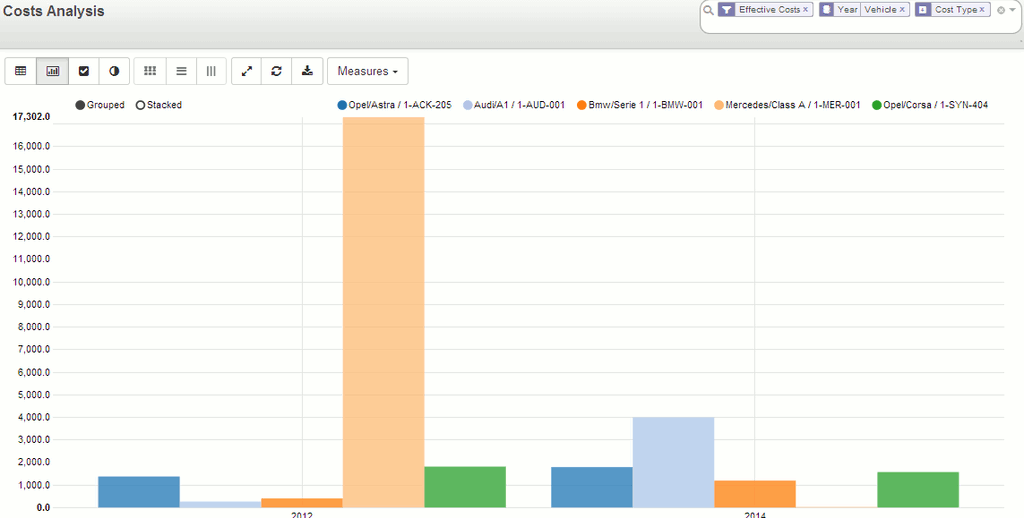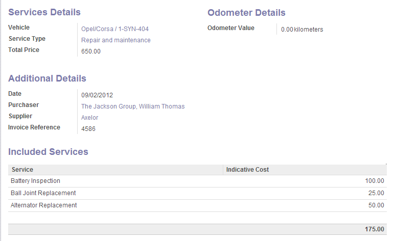 Show all costs associated with a given vehicle or with a type of service. You can also make a comparison or analysis between different types of costs (which vehicles cost the most; which services have been performed on which vehicles; etc) by using the reporting tool.