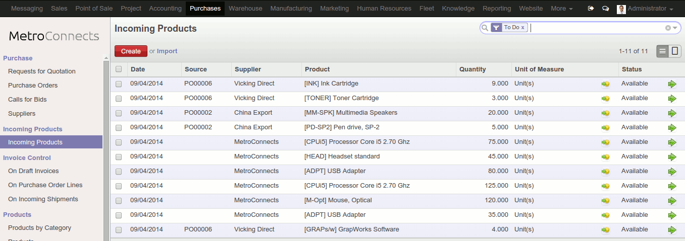 Get the right purchase proposition at the right time to reduce your inventory level. Improve your purchase and inventory performance with procurement rules depending on stock levels, logistic rules, sales orders, forecast manufacturing orders, etc.