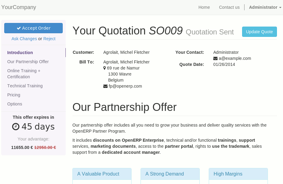 Everything you need to know can be found in one place. Send offers with clear pricing to your customers and let them accept it, reject it or ask for more information.