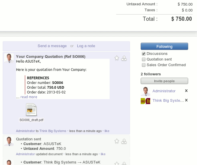 The billing software app allows you to create and send professional looking invoices and get paid online. The system directly integrates with other the other ERP apps to bill automatically based on your activities.