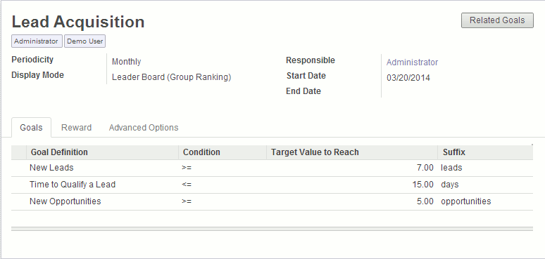 You can create a template from various examples and choose any form for the challenge, based on your company's needs - such as number of new leads, time to qualify a lead or the total amount invoiced in a specific week, month or any other time frame based on your management preferences.