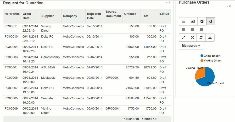 Write RfQs, send purchase orders and track your suppliers' performances with the "Purchase" App.
