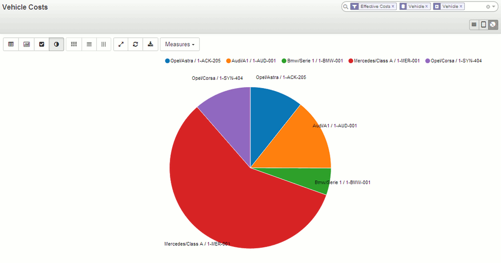 Show all costs associated with a given vehicle or with a type of service. You can also make a comparison or analysis between different types of costs (which vehicles cost the most; which services have been performed on which vehicles; etc) by using the reporting tool.