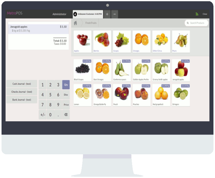 The Point of Sale works perfectly on any kind of touch-enabled device, whether it's multi-touch tablets like an iPad or keyboardless resistive touchscreen terminals.